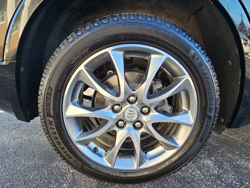 - Experience Buick PackageIncludes 8-in diagonal color touch screen with navigation and Buick Infotainment System, AM/FM stereo, two USB ports, auxiliary input jack, Bluetooth streaming audio for music and most phones, advanced phone integration featuring Apple CarPlay and Android Auto, panoramic moonroof, 19-in bright aluminum wheels with Midnight Silver painted pockets and 235/50R19 all-season blackwall tires.