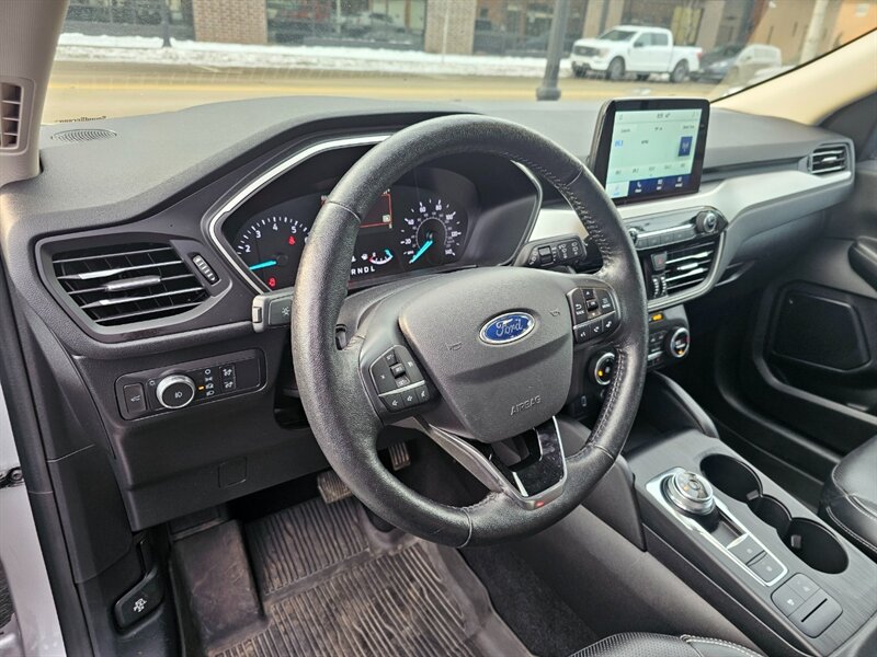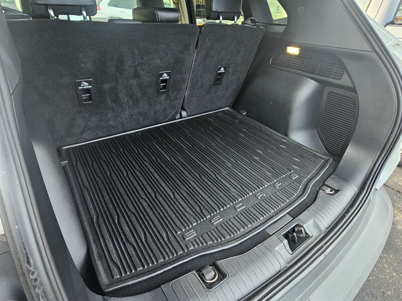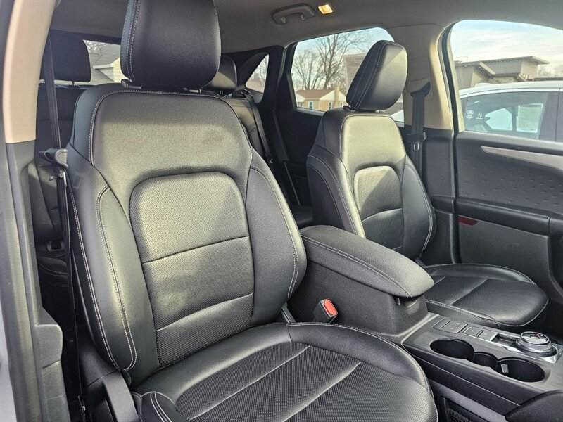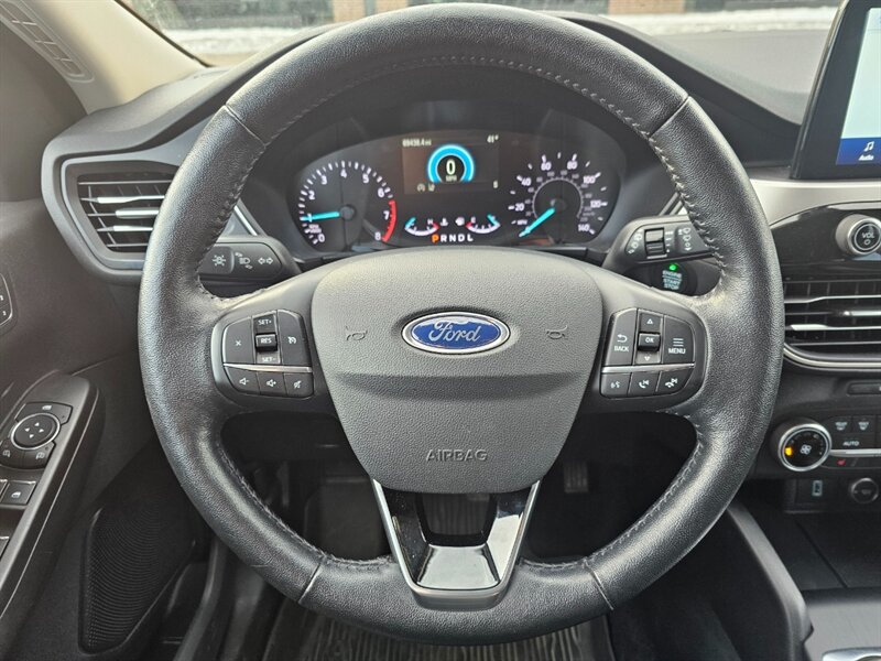 This AWD 2020 Ford Escape SEL comes equipped with a 181-hp turbocharged 1.5L engine, hands-free power rear liftgate, heated front seats, leatherette upholstery, heated steering wheel, remote engine start, rear vision backup camera with rear parking sensors, side blind spot monitoring with rear cross-traffic alert, pre-collision assist with automatic emergency braking, lane departure warning and assist, SYNC voice-command system for hands-free phone and audio/climate control, 8-inch touchscreen, USB audio inputs, Bluetooth, satellite radio, Apple CarPlay and Android Auto smartphone integration, audio controls on the steering wheel, heated side mirrors, 10-way power driver seat with power lumbar and seat position memory, keyless push button ignition/entry, remote keyless entry, fog lights, 18-inch aluminum wheels, and much more. Clean CARFAX. Fully inspected and serviced. Covered under remaining Ford 5-year/60K-mile Powertrain Warranty. Don't let this Escape get away! Print this page and call us Now... We know you will enjoy your test drive towards ownership!