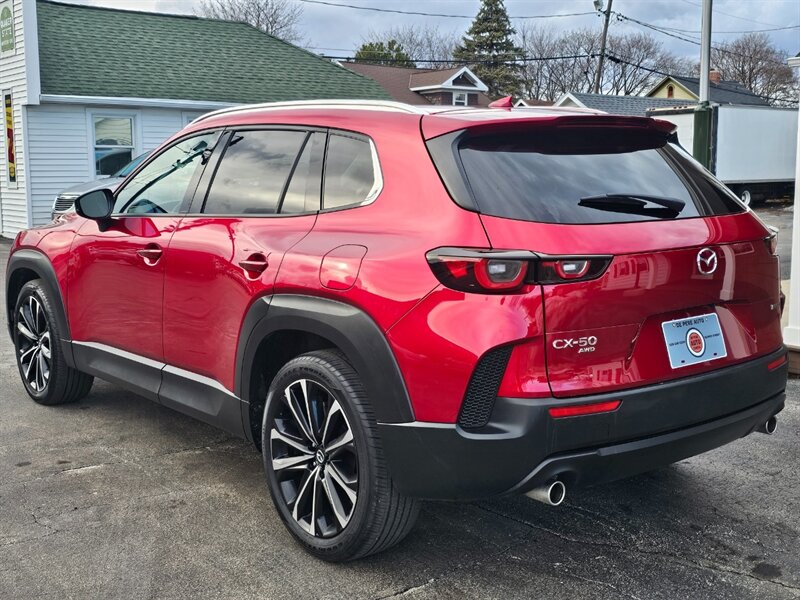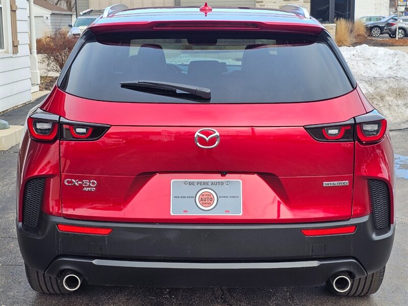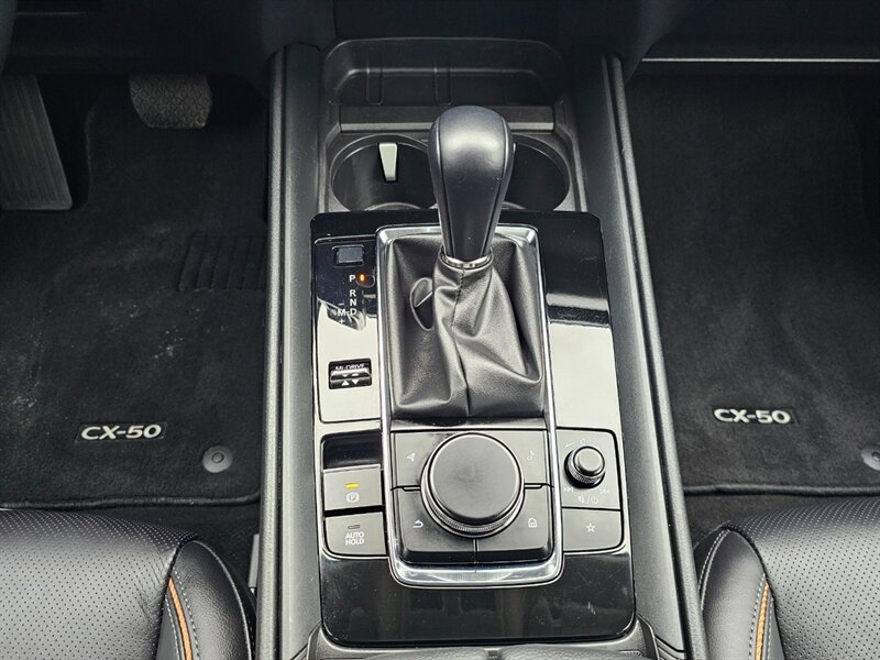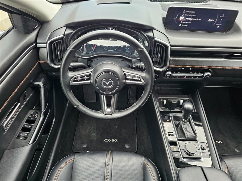 This 2025 Mazda CX-50 Premium Plus comes equipped with a panoramic moonroof, heated and ventilated leather seats, power rear liftgate, side blind zone and rear cross-traffic alert, adaptive cruise control, forward collision warning with automatic emergency braking, lane keeping warning and assist, rear vision backup camera, 10.25-inch touchscreen, 12-speaker Bose audio system, Bluetooth, satellite radio, Apple CarPlay and Android Audio smartphone integration, wireless smartphone charger, head-up display, power-adjustable front seats with driver side lumbar, dual-zone climate control, 20-inch alloy wheels, heated power-folding side mirrors, windshield wiper de-icer, and a lot more. Clean CARFAX. Fully inspected and serviced. Covered under remaining Mazda 3-year/36K-mile Basic and 5-year/60K-mile Powertrain Warranty.